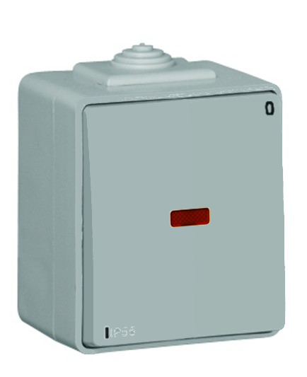 - Spínač dvojpólový - radenie 2 - so signalizačnou LED 16A - 250V, krytie IP65, šedá