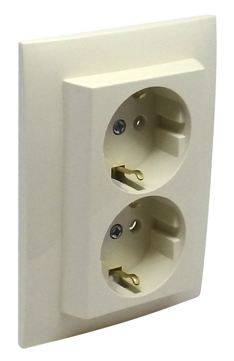 Komplet dvojzásuvka Schuko s clonkou, slonovinová kosť